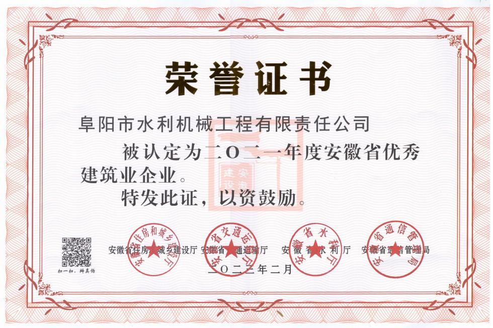 2021年度安徽省優(yōu)秀建筑業(yè)企業(yè)